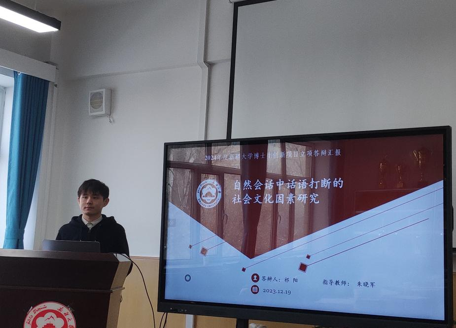 会议伊始,高志副院长宣布报告会开始。首先,是由四位立项答辩报告人就各自申报项目立项依据、研究内容、方法、技术指标、拟解决的关键问题、研究方案及可行性分析逐一进行汇报。中国古代文学专业博士生曾雪莹从五个方面对她的项目展开论述;中国古代文学专业博士生甘文博就选题背景开始展开了详细介绍;语言学及应用语言学专业博士生祁阳从三个方面对其项目研究背景和研究意义做了详细的介绍;比较文学与世界文学专业博士生李闪闪就研究对象的学术生涯进行了介绍,而后从国内研究进行了重点阐述。